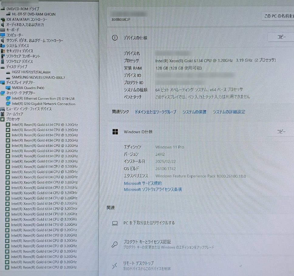 Windows 11 高クロック16コア 4 K タワー型WS Lenovo ThinkStation P 720 Xeon G 6134 3.2 GHz ×2|128 GB|SSD 512 GB 2 TB|DVD|Quadro 400