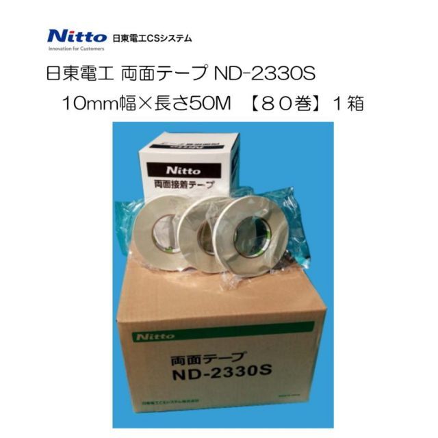 日東電工 両面テープ ND 2330 S 幅10 mm 長さ50 M 1箱 80巻入 TA 132 80 プラスチック製品の接着に適しています 耐反発性 高温に強い