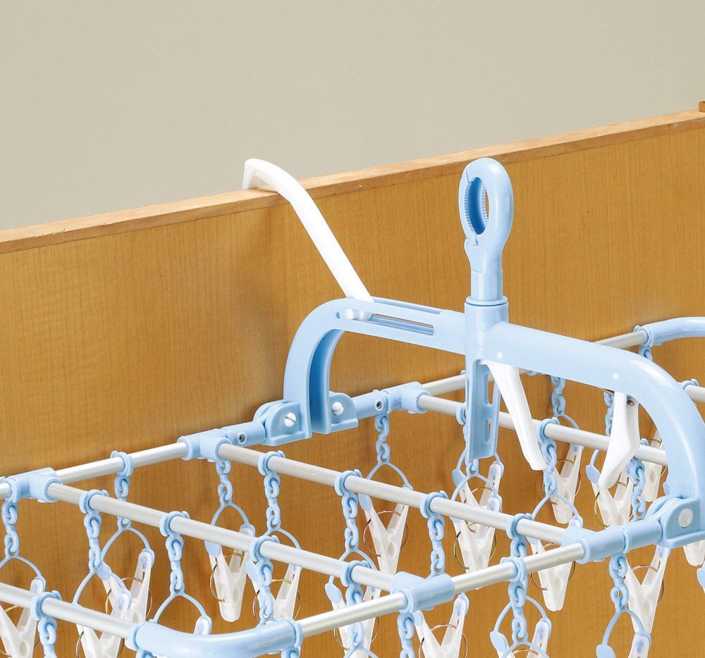 内臓のフックでドアや鴨居に簡単にかけられるので部屋干しに最適