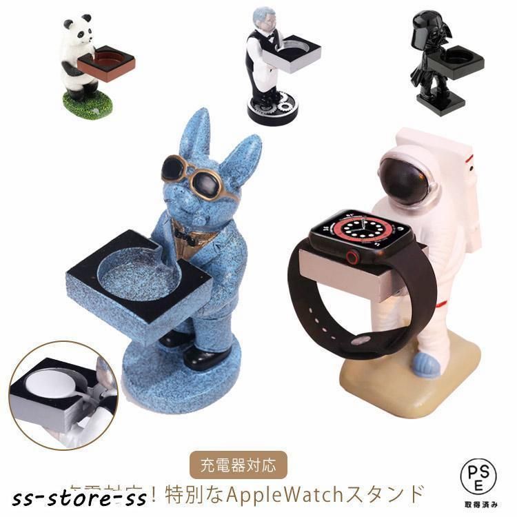 執事:13.5*6cm 宇宙飛行士:11*5cm 犬:14*5cm 黒サムライ:14*4.5cm パンダ:13*5.5cm ※サイズ表の実寸法は商品によって1-2cm程度の誤差がある場合がございます。※対応機種: Watch Series 1/2/3/4/5/6/7/8/se ※スタンドのみの販売になります、充電器(コード)は付属されておりません。