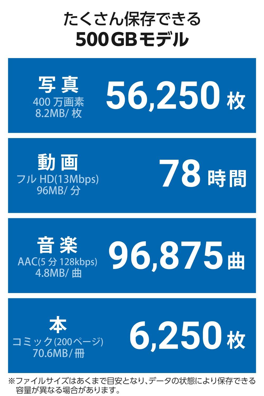 読み込み最大600MB/s・書き込み最大500MB/sの高速データ転送を実現する、USB 10Gbps(USB3.2(Gen2))外付けポータブルSSDです。