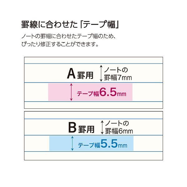 ●罫線にあわせたテープ幅のため、ぴったり修正することができます。A罫用、10個セットです。