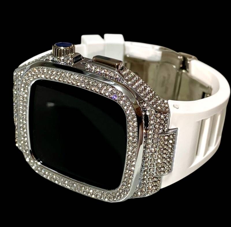 アップルウォッチケース 互換性カスタム カバー 保護 ギフト AppleWatch 42 44 45 46 キラキラ ベルト レザー バンド series 4 5 6 7 8 9 10 11 se 1 2 3 roze ホワイト