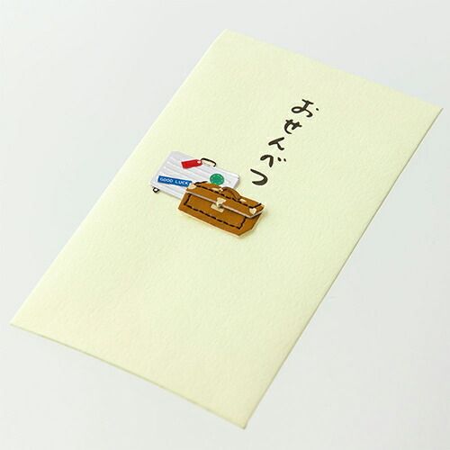 ぽち。ポチ袋。「旅立ち」を連想させる、旅行鞄柄で「おせんべつ」を表現しました。使うシーンに合わせたモチーフを立体的なペーパークラフトで作りました。【検索ハッシュタグ】#ぽち袋#ポチ袋#金封#祝儀#ご祝儀袋#御祝儀袋#お祝い#
