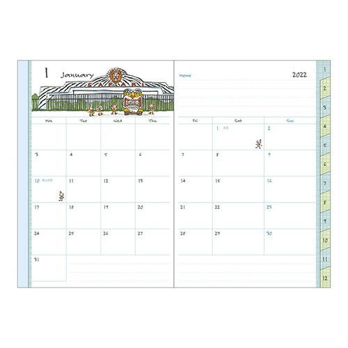 『ポケットダイアリー』は、女性の日常を楽しく彩るダイアリーシリーズとして1985年に誕生しました。お好みで選べる豊富なサイズとデザインで、今日まで多くの方々にご愛用いただいています。表紙カバーの柄のみを変更し、中紙は共通のフォーマットを使用している手帳が多い中、本シリーズは、毎年デザイナーが新規でページごとに異なるイラストやデザインを制作し、ページをめくる楽しさやワクワク感を盛り込んでいるのが特徴です。女性の鞄にも収まりやすいB6サイズは書き込みのしやすさも特徴のサイズ。全ページフルカラーで変わっていくデザインをお楽しみください。最初の1月には、干支にちなんだ「のりもの」を採用。2022年はサファリパークをイメージしたトラバスです。本物のトラもいます。その他の月は季節に合わせた、楽しい「のりもの」がたくさん描かれています。そのほかの月は季節にあわせた、楽しいのりものがたくさん描かれています。のりもの柄にでてくる、スポーツ万能で、どんなのりものも乗りこなせる、怖いもの知らずな人たち。全ページ書き下ろしの柄なので、さまざまな乗り物に乗る「彼ら」の中には1人として同じ人はいないです。そんな彼らと楽しい1年をお過ごしください。本文に使われている「MD用紙」はにじみや裏抜けがしにくく、書き味の良さを追求し続けているオリジナルの筆記用紙です。【検索ハッシュタグ】#ミドリ#デザインフィルミドリ#ダイアリー#手帳#スケジュール#スケジュール帳#ジャーナル#年末品#日付品#2022#ポケットダイアリー#B6#のりもの