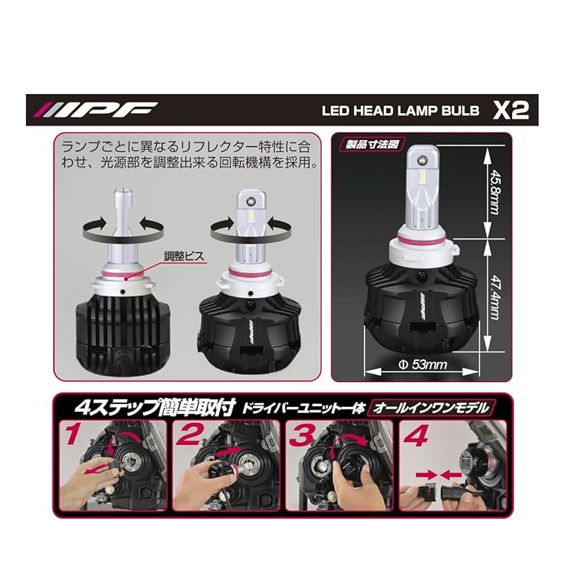 IPF ヘッドライト LED HIR 2 バルブ 12 V 24 兼用 6500 K 5000 lm ドライバーユニット一体型 C-HR ヤリス 3 R 1 HLB