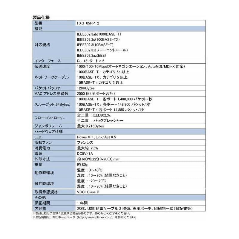 商品名:プラネックス PLANEX 5ポートリピーター機能搭載 ギガビット ハブ FXG-05RPT2