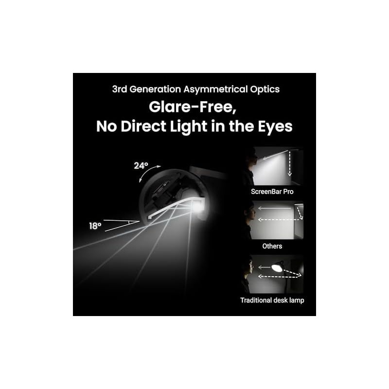 ASYM-LIGHT非対称光学技術:ScreenBar Pro独自の非対称光学技術により、画面への映り込みやまぶしさを軽減し、目に優しく作業効率を向上させます。