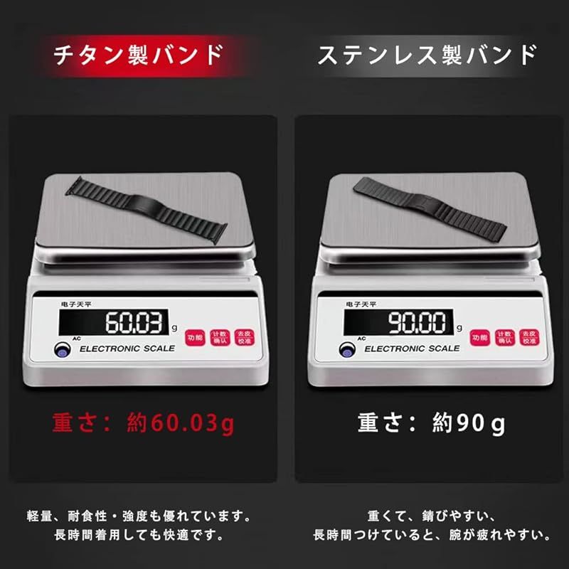 【高品質なチタン製バンド】チタンで作られました。チタン製バンドは軽くて丈夫な金属です。耐食性が高く、汗や体液に溶け出しにくいため、金属アレルギーはほとんど起こらないです。
