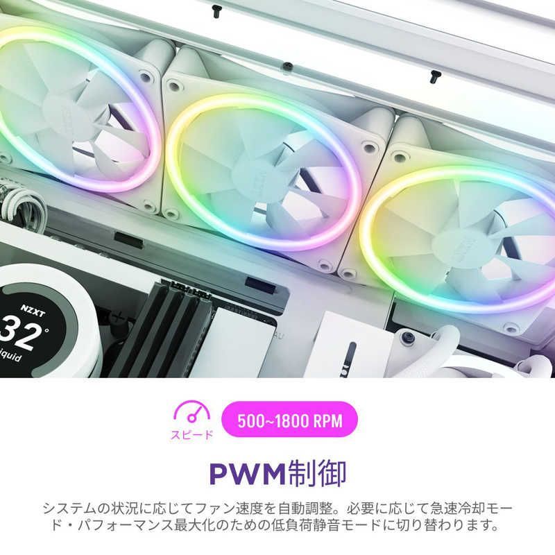 NZXT ケースファン ×3 120 mm 1800 RPM F series RGB DUO FAN ホワイト RF-D 12 TF-W 1