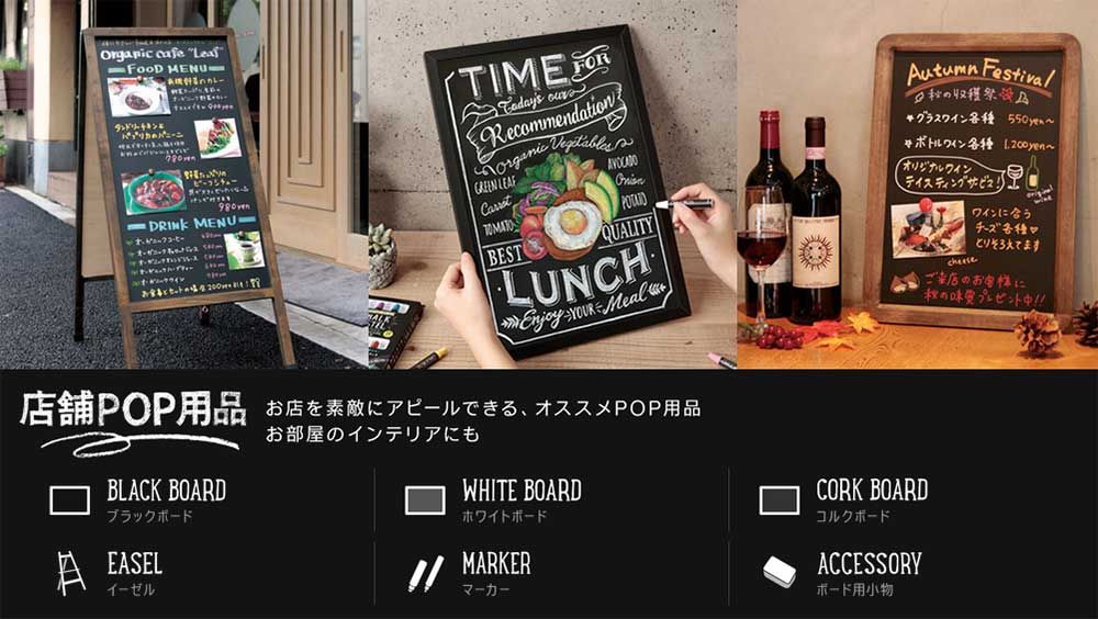 ○ホワイトボード、ブラックボード、ガラス、アクリルに筆記可能