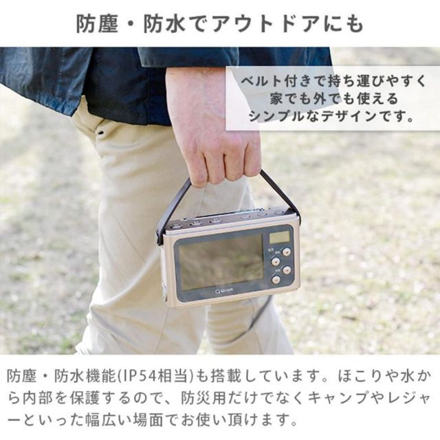 また、IP54相当の防じん・生活防水機能付きで、ほこりや水から内部を保護するのでアウトドアでもご使用いただけます。