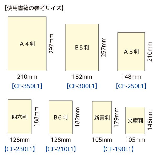 ○250mm幅は特にA5判(148×210mm)におすすめ。