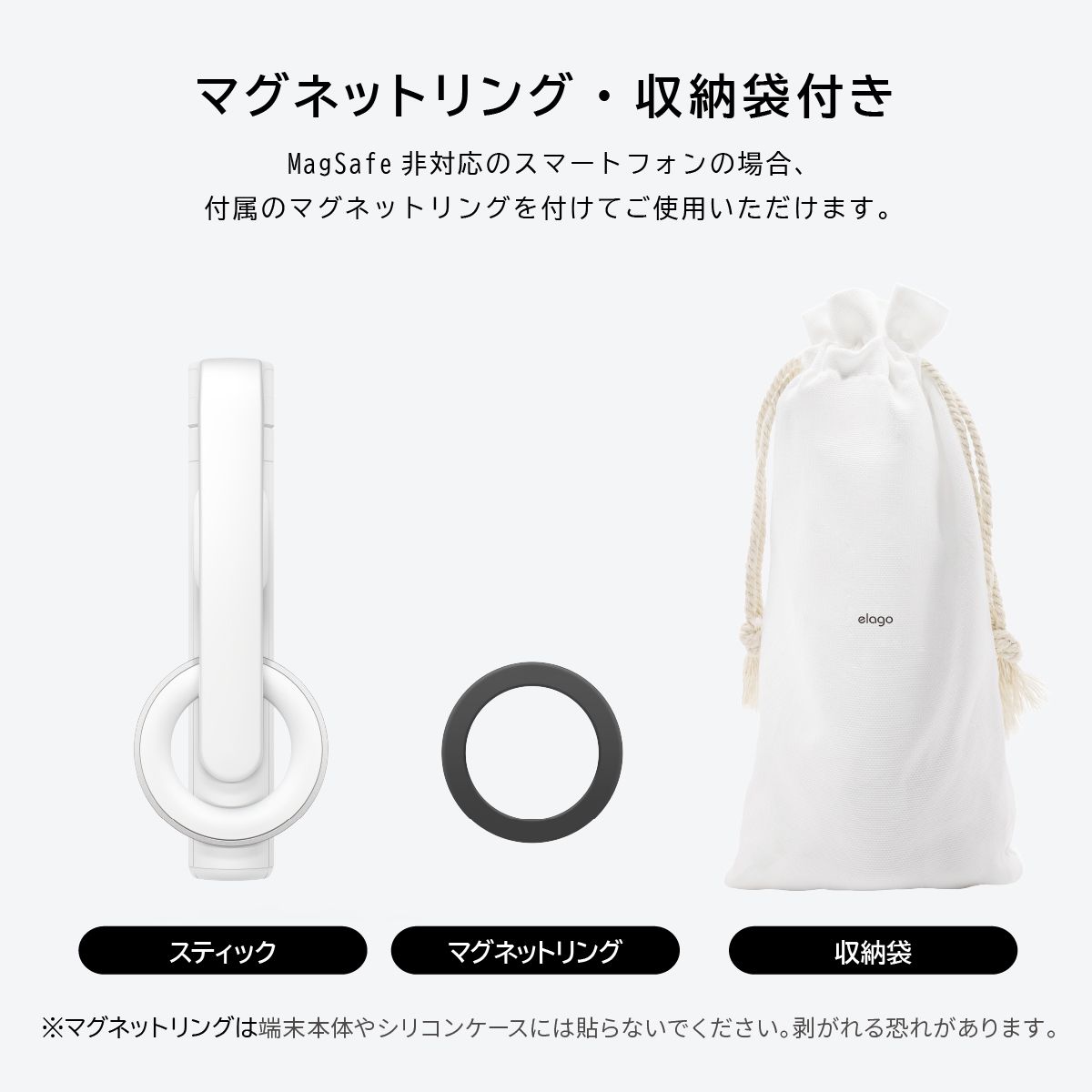 【製品仕様】… ◆ 対応機種 : MagSafe対応 iPhone 他各種 スマートフォン ◆ 内容物 : セルフィースティック × 1本、リモコン × 1個、マグネットリング × 1個、収納袋 × 1個 ◆ サイズ : 約 16.5cm × 6cm × 5.5cm ◆ 重量 : 約 170g ◆ 素材 : ABS樹脂、ポリカーボネート、アルミニウム、マグネット、シリコン