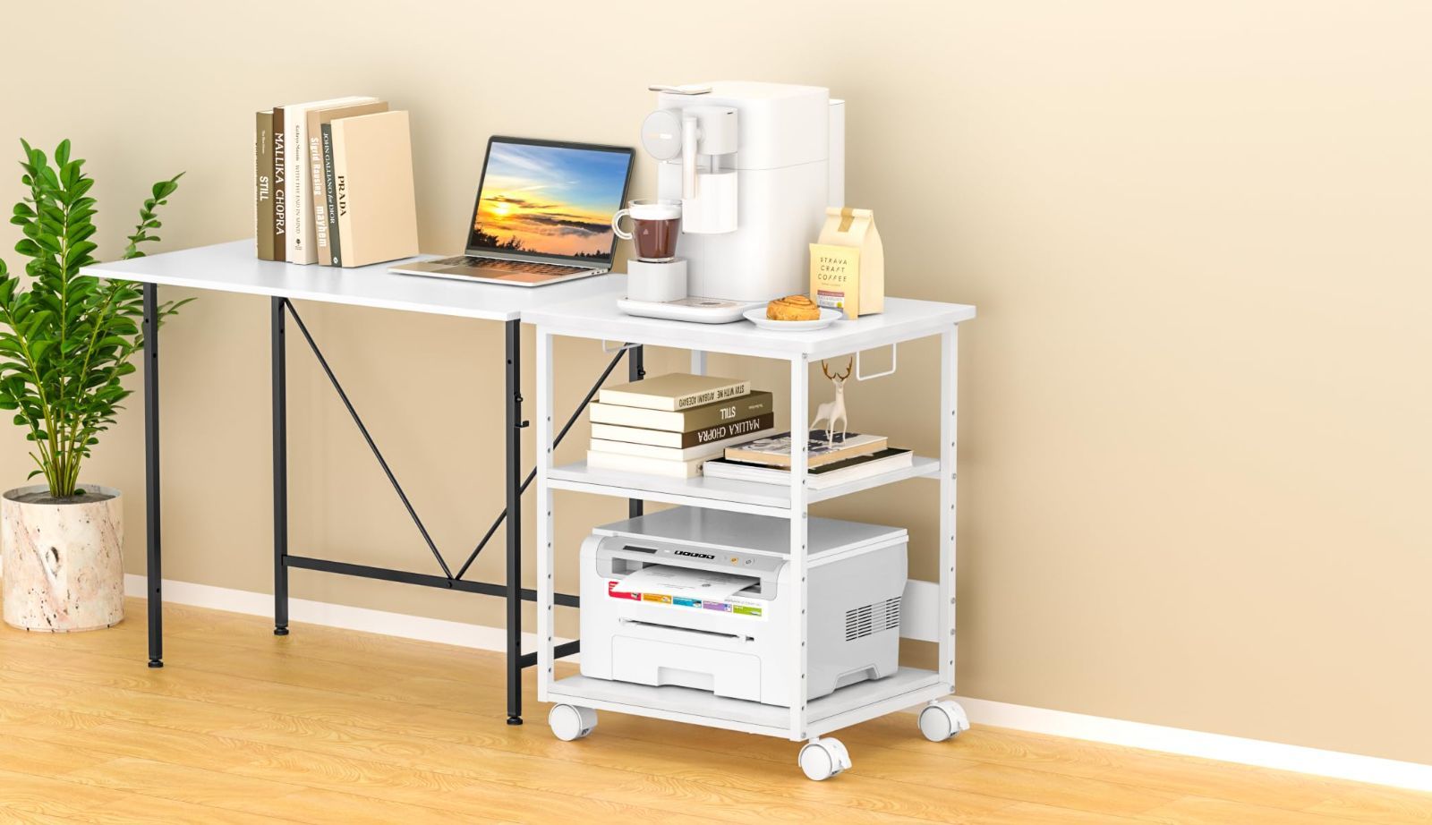 MIYOKI プリンター台 プリンタラック キャスター付き 幅60 奥行50 cm 高さ70 総耐荷重90 kg A 3 4対応 コピー機台 サイド デスク ワゴン デスク下 収納棚 収納 物置台 中棚9段階調節 組立簡単 ホワイト