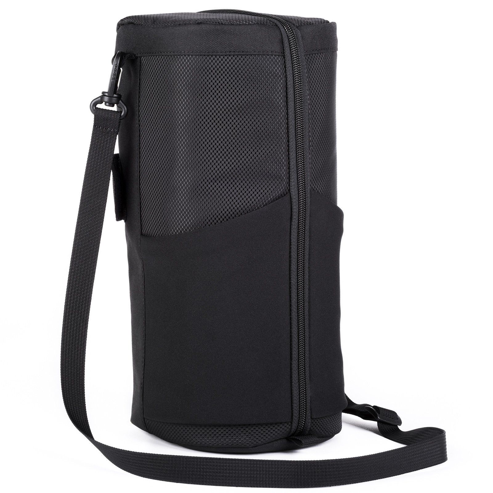 150-600mm F5-6.3 のレンズをフード逆付けで収納できるポーチです。付属のショルダーストラップで単体使用も可能です。