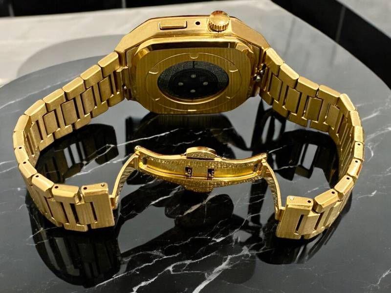 ゴールド 45mm 最新ネジ工具不要 簡単脱着 ワンタッチ AppleWatchメタル カバーケース 脱着 簡単 保護 カスタム ベルト バンド アップルウォッチ対応