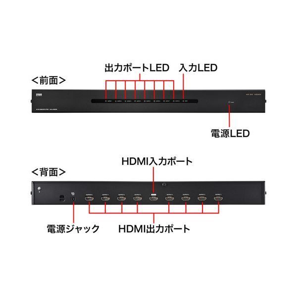 インターフェース:入力:HDMIタイプA19ピン(メス)×1、出力:HDMIタイプA19ピン(メス)×8