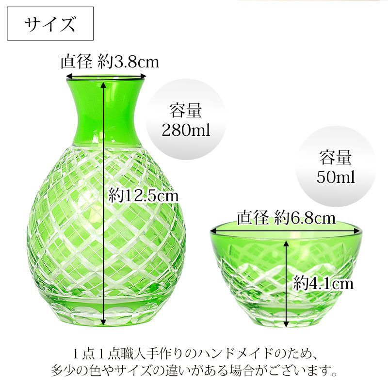切子 徳利 お猪口 3点セット きりこ とっくり おちょこ ギフトボックス入り 日本酒 冷酒 退職祝い 還暦祝い プレゼント おしゃれ ガラス 食洗機対応 レッド コバルトブルー グリーン 酒器
