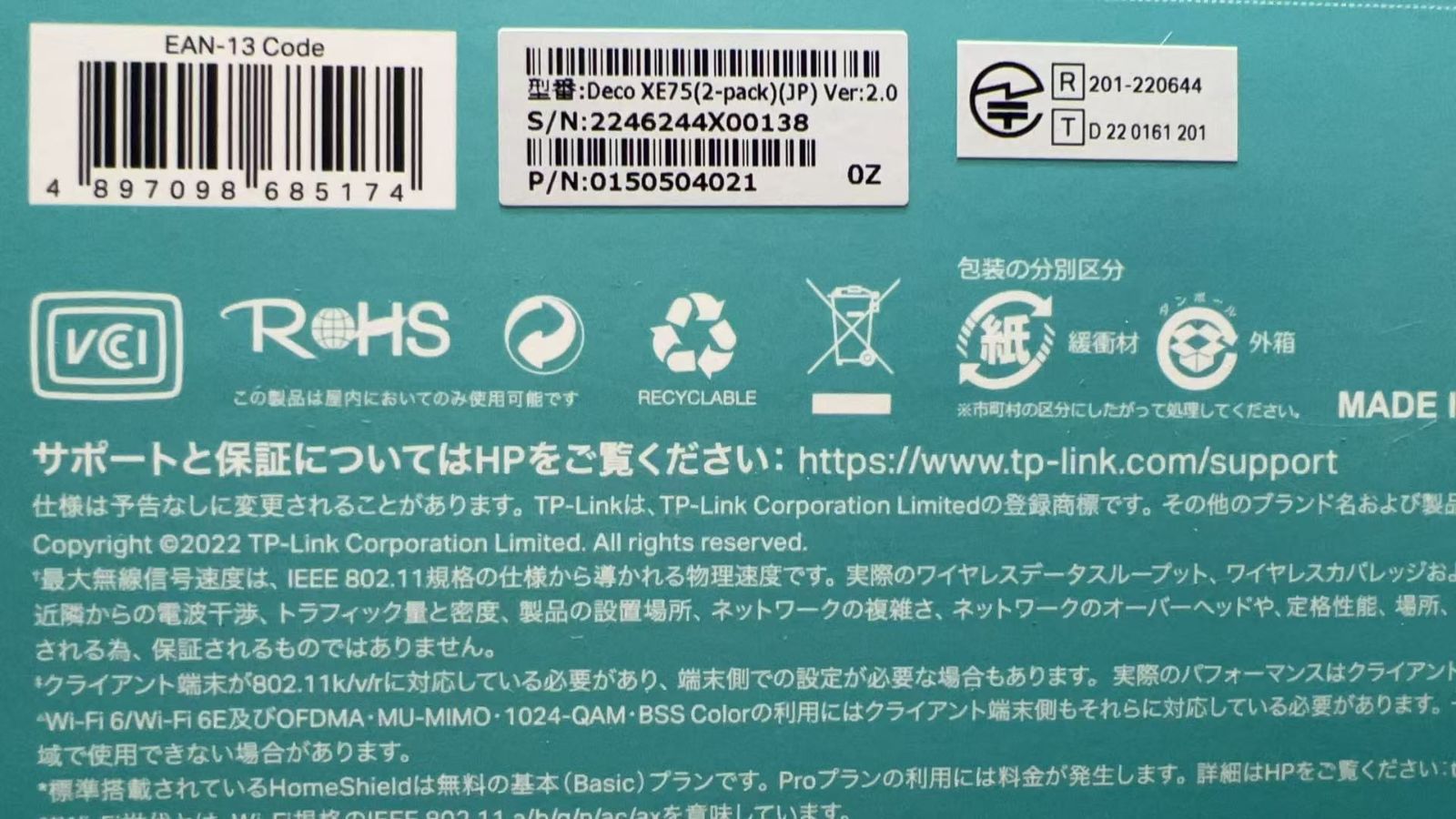 WiFi 6E :最新のWiFiテクノロジーで最大270㎡(1パック)をカバーし、お家の隅々まで届く快適な環境を実現します。