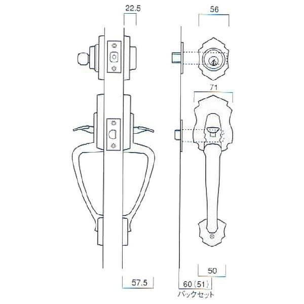 古代 KODAI コダイ モナコ T 305 装飾玄関錠 バックセット BS 51 mm or 60