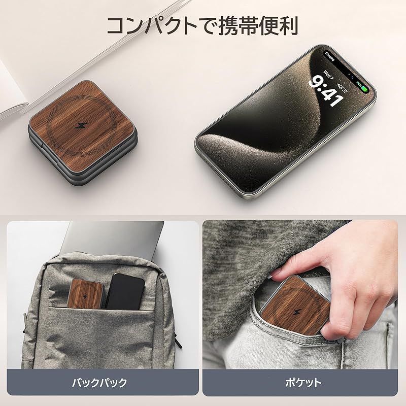 【一台三役ワイヤレス充電器】私たちのワイヤレス充電器なら、iPhone 16/15/14/13/12シリーズ、マグセーフ充電ケース付きのAirPods、そしてアップルウォッチ全シリーズに対応しています。異なる充電器を使う手間を省き、これ一台で完結します。磁気でカチッとくっつけるだけで、スムーズに充電がスタートします。