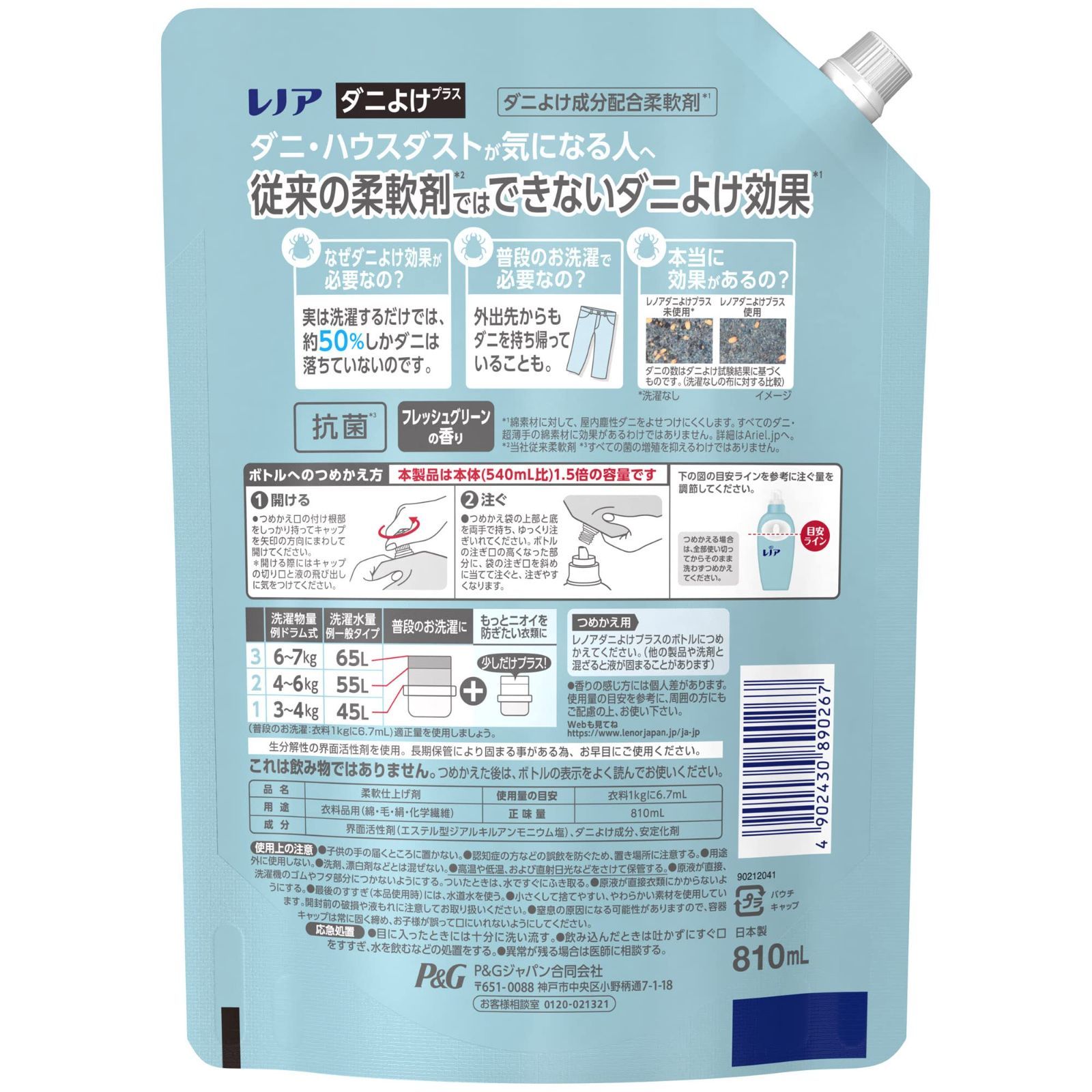 柔軟剤 ダニよけプラス 詰め替え 本格消臭 超特大 レノア 810 mL