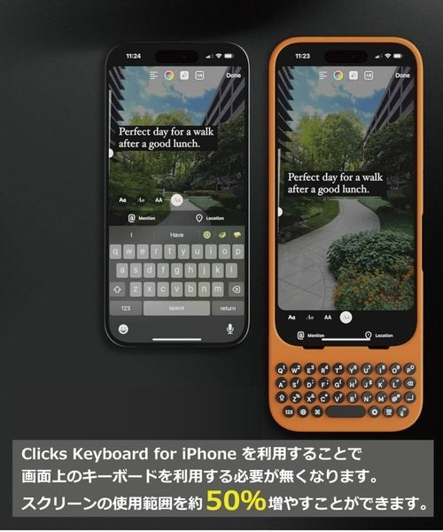 スマホをもっと快適に。Clicks Keyboard は、タイピングの楽しさと画面の広さを両立する、新しいiPhoneケースです。