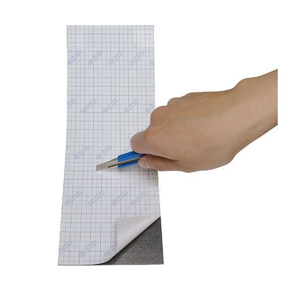 粘着剤付面に掲示物を貼り、磁石面をスチール面にピタッ!ハサミやカッターで自由に切れます。ポスター・オフィスやご家庭でのメモ止め等に便利です