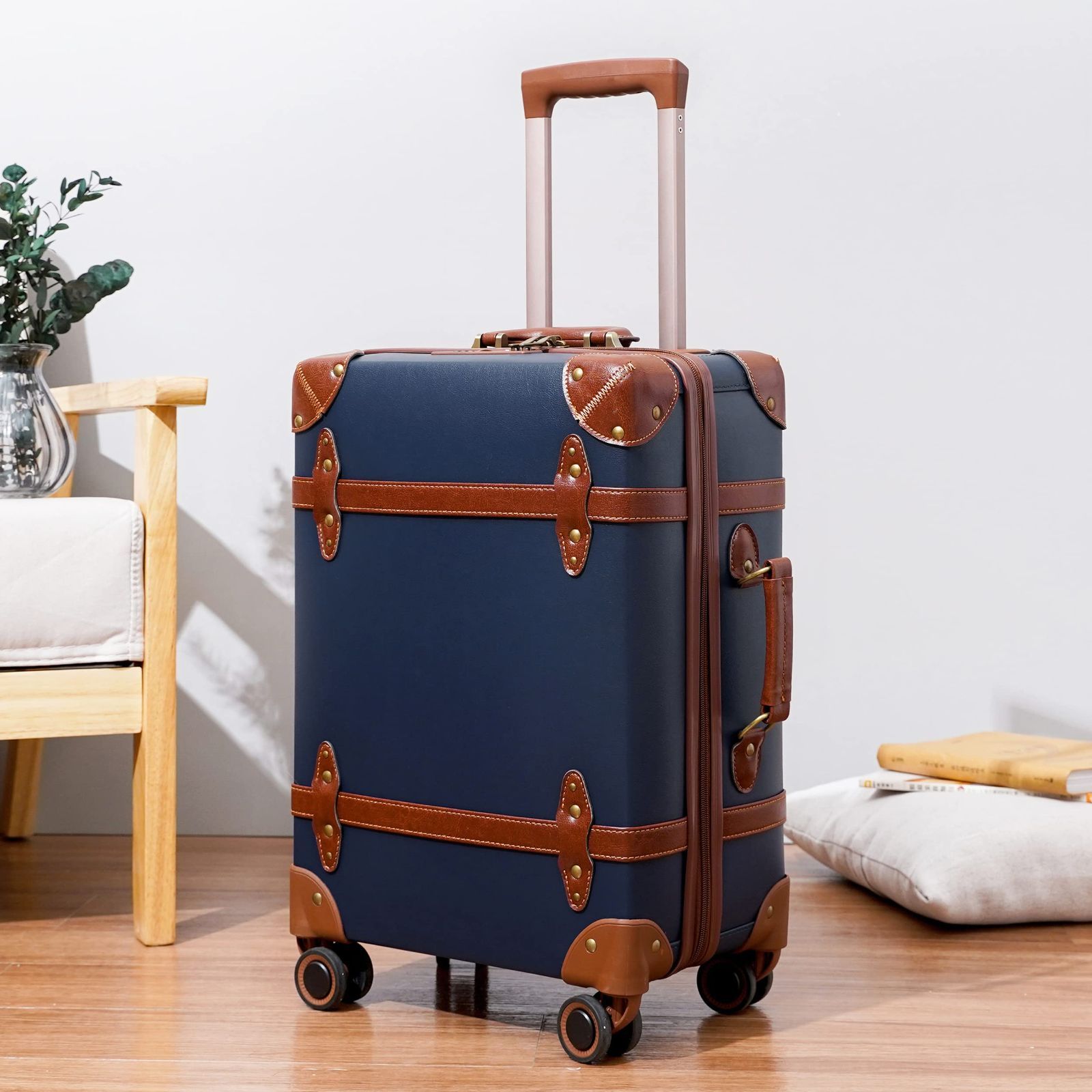 NZBZ ミュートスピンナーホイール付きのレトロなキャリーケース おしゃれトランクスーツケース キャリーケース 機内持ち込み 軽量 ビジネス 学校 旅行に適した軽量トロリースーツケース S 20 型 ブルー