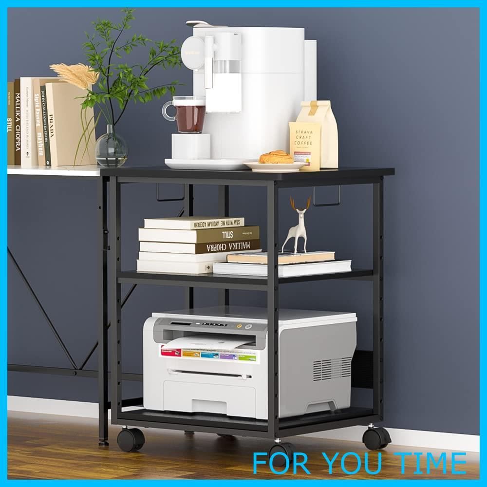 数量 MIYOKI プリンター台 プリンタラック キャスター付き 幅60 奥行50 cm 高さ70 総耐荷重90 kg A 3 4対応 コピー機台 サイド デスク ワゴン デスク下 収納棚 収納 物置台 中棚9段階調節 組立簡単 ブラック