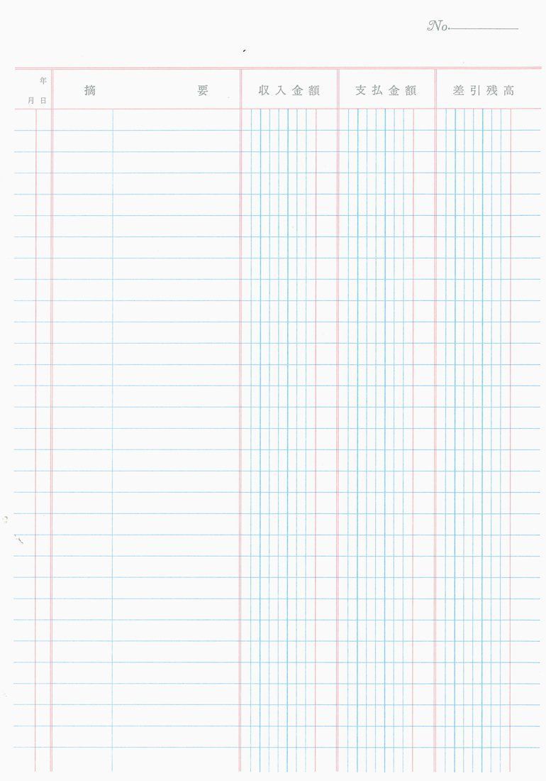 ●罫内容は帳簿と同じく三色刷りのため、区分が明瞭で楽に記帳できます。