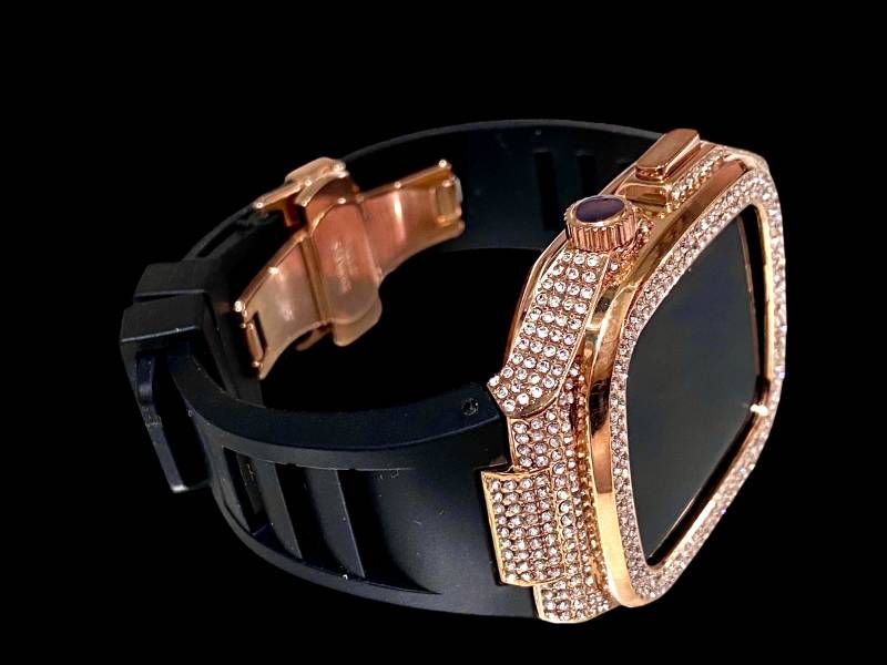 アップルウォッチケース 互換性カスタム カバー 保護 ギフト AppleWatch 42 44 45 46 キラキラ ベルト レザー バンド series 4 5 6 7 8 9 10 11 se 1 2 3 roze black