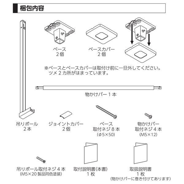 ●ベース部の警告シールが出た場合、製品のヒビ・欠け、著しい腐食、ポールや物掛けカバーが曲がるなどの変形などがあった場合は直ちに使用を中止してください。