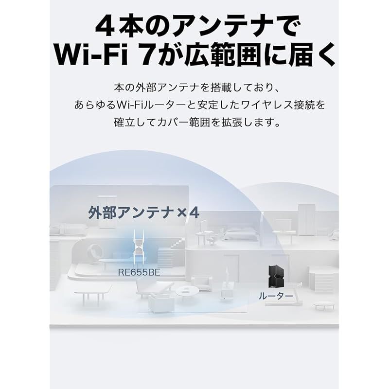 商品名:TP-Link WiFi BE9300規格 5760Mbps(6GHz) + 2880Mbps (5GHz) + 688Mbps (2.4GHz) 中継機 RE655BE