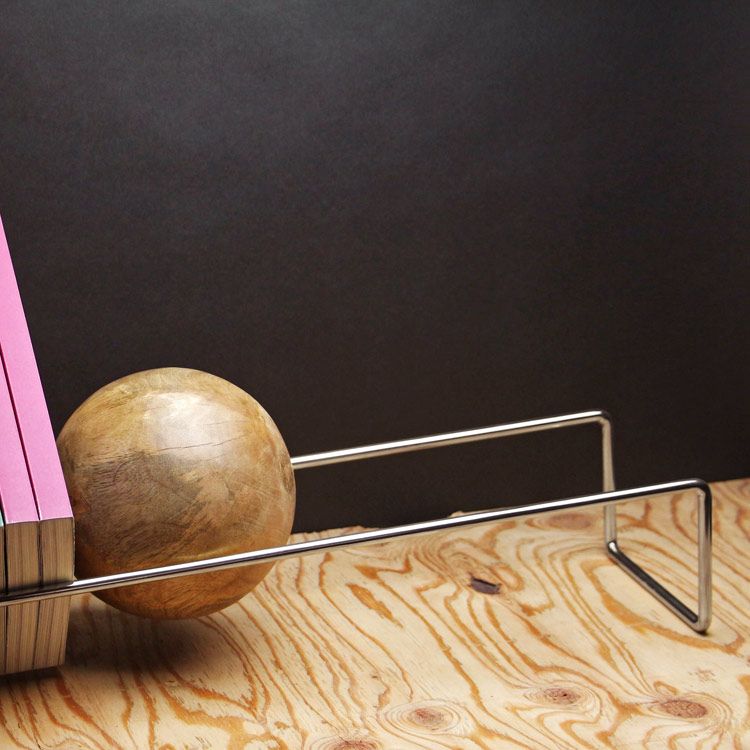 Slope Book End スロープブックエンド シルバー W 48 D 18 H cm Ball 15 8 HERE by DETAIL ボール色は少し明るめの木目