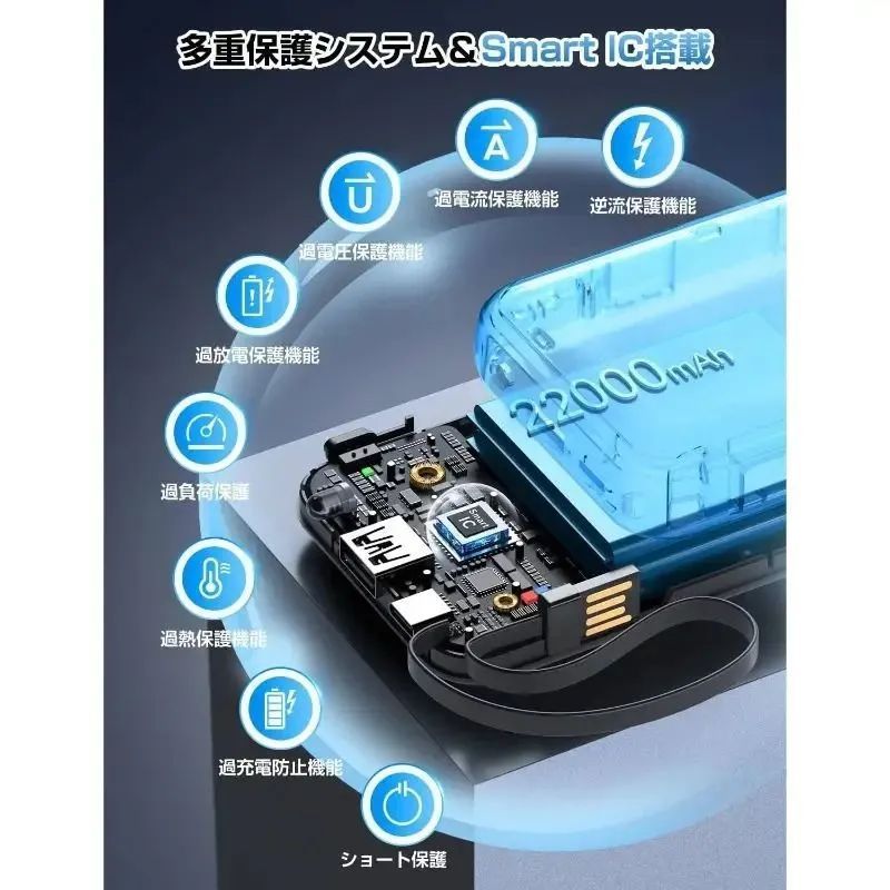 デザイン 大容量 軽量 小型 4台同時充電 LCDディスプレイ ミラーデザイン 超軽量 携帯しやすい type-c入力ポートとusb-a出力ポート モバイル充電器 スマートフォン充電器 LEDライト 携帯用 すべてのモデルと互換性があり