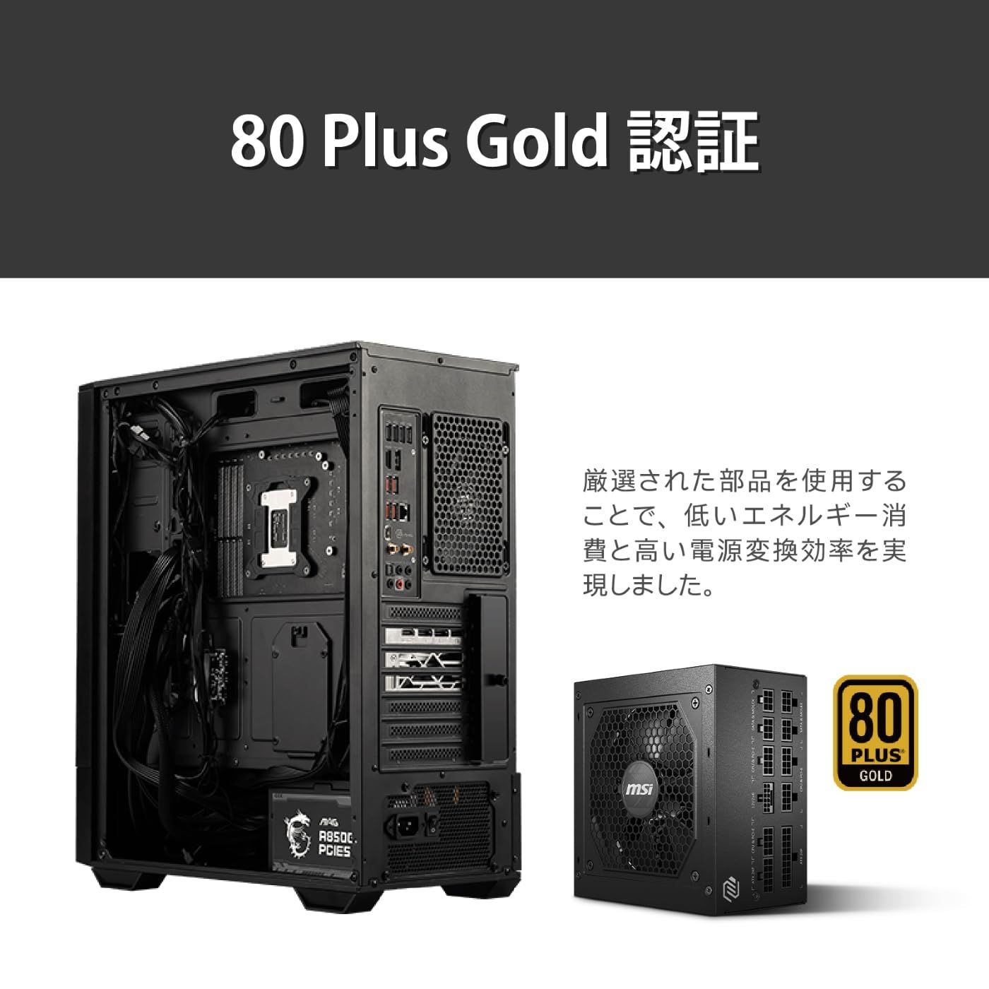 80 PLUS GLOD認証の高い電源変換効率とATX3.0規格に対応したPC電源ユニット