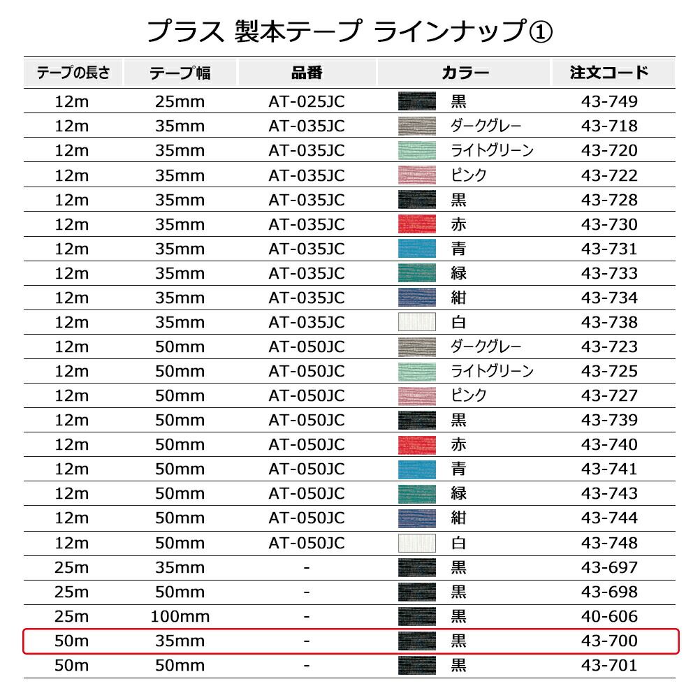 プラス 製本テープ 紙クロステープ 裏糊付 幅35 mm 長さ50 m 黒 43700 セット