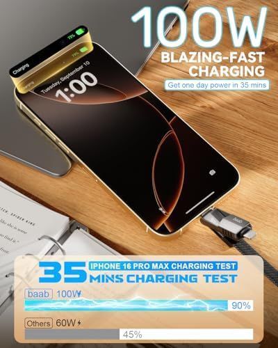 ※超高速100W充電&480Mbpsデータ転送※わずか35分でiPhone 16 Pro Maxを80%まで充電できる急速充電をお楽しみください。 データ転送速度は最大480Mbpsに達し、わずか20秒で1GBの素早いファイル転送が可能です。