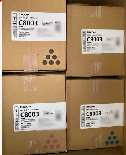 RICOH C8003トナーカートリッジ、ブラック、マゼンタ、イエロー、シアンの4色セット。