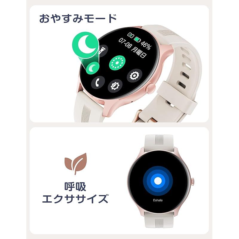 商品名:HUAKUA スマートウォッチ レディース iPhone アンドロイド対応 通話機能付き 通話音声調整可 一発消音 Smart Watch 1.38インチ大画面 丸型 腕時計 歩数計 着信通知 睡眠管理 天気予報 消費カロリー IP68防水 長持ちバッテリー