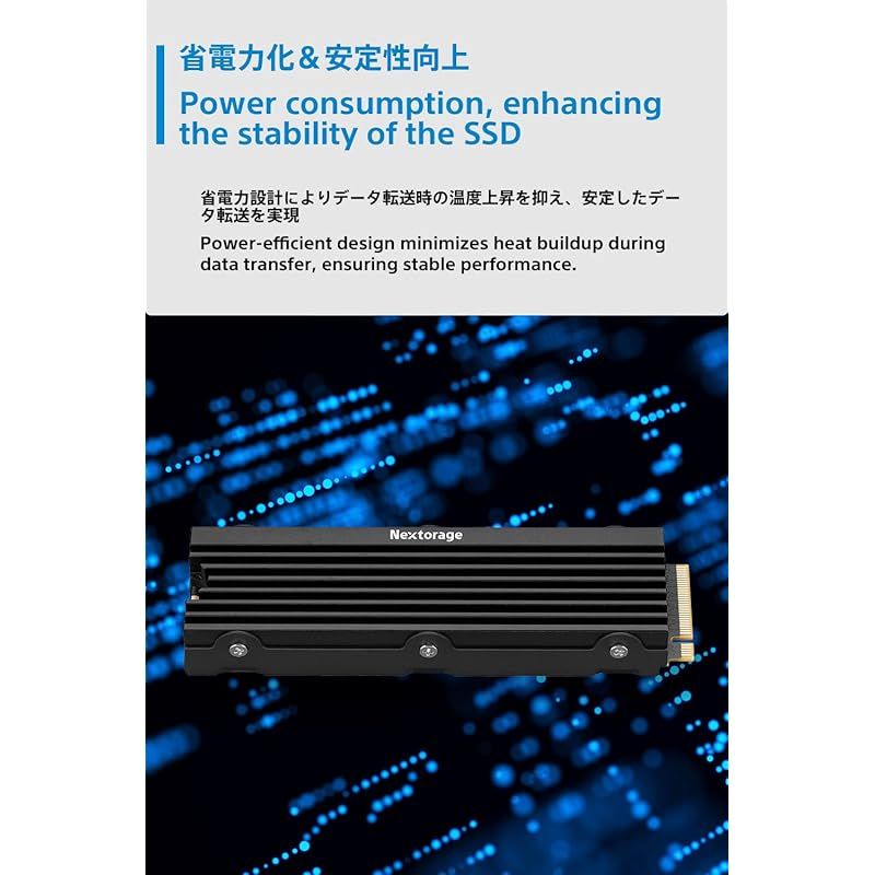 【安定性を強化】蓄積した技術による省電力効果で、消費電力の削減と共に温度状況を抑制し、SSDの安定性を向上させます。これにより、ロード時間の短縮や途切れないプレイ体験が可能になり、より快適でスムーズなゲーミング環境を提供します。