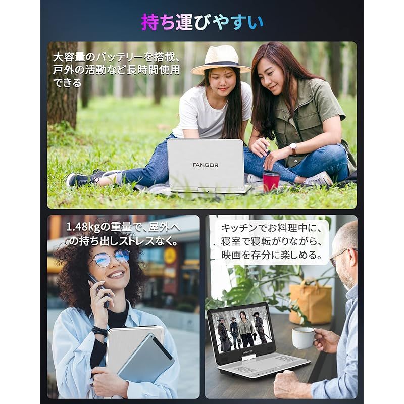 FANGOR ポータブルブルーレイプレーヤー 14 1インチ HDMI出力 270度回転式画面 充電バッテリー搭載 CPRM対応 途中再生 3電源対応 3時間連続再生 日本語取扱説明書 ホワイト