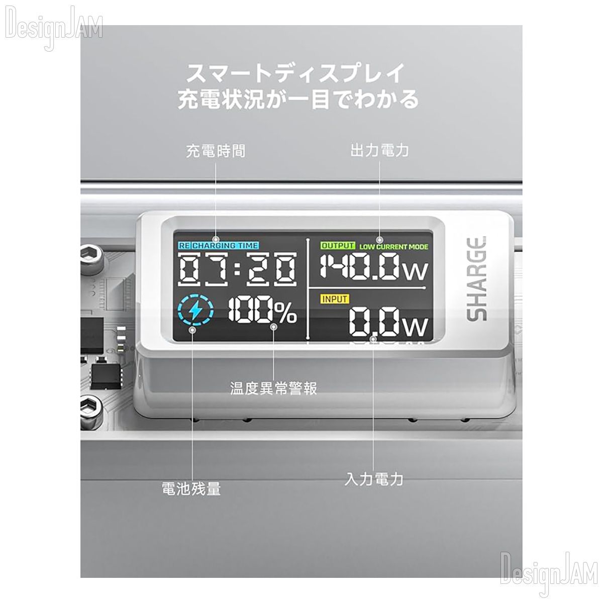 SHARGE 140 Wモバイルバッテリー 20 000 mAh スマートディスプレイ搭載