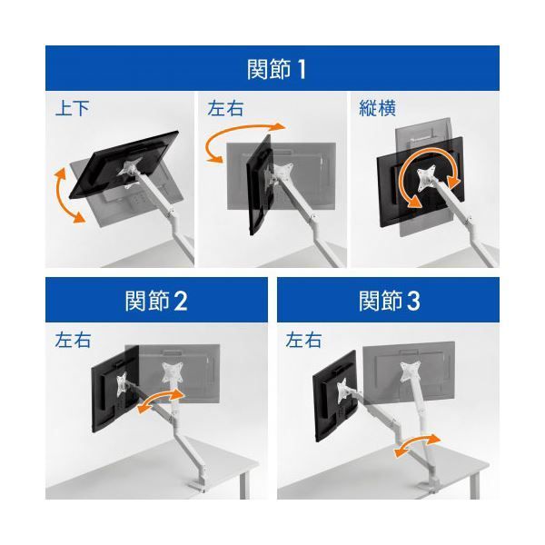●17〜32インチサイズのモニターに対応するガススプリング式のシングルモニターアームです。