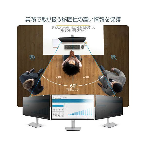 ●画面中央から左右30度までの範囲内でしかモニター画面が見えないので、人の出入りが多いオフィスなどでも安心して作業ができます。
