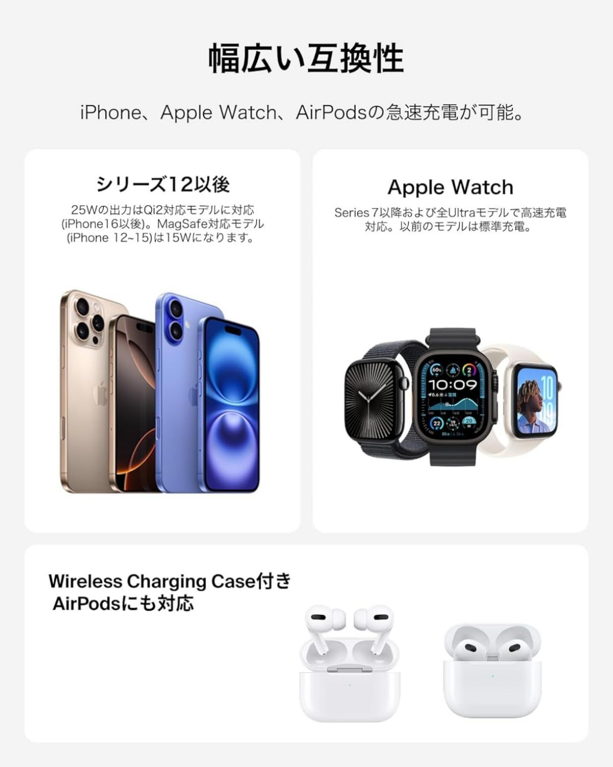 【急速充電対応】最大25Wの急速充電を実現、iPhone16を50%まで約29分で充電可能、Apple watchは30分で約80%まで充電できます。
