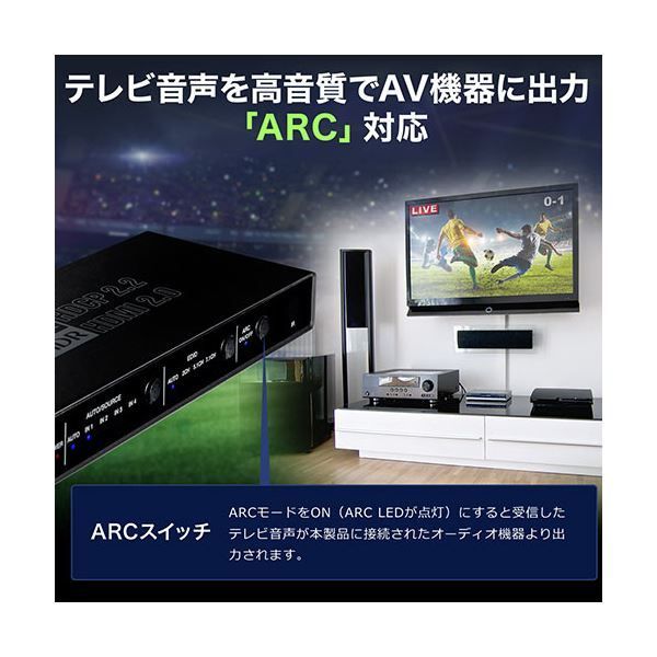 ●ARCに対応しており、テレビ放送のデジタル音声を本製品の光デジタルポートより出力できAVアンプ等に接続された高音質スピーカーで楽しむことができます。