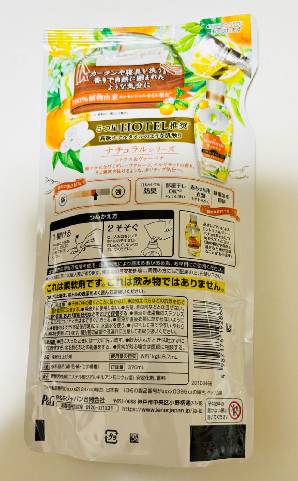 詰め替え 入り 本体 P G レノア ハピネス 夢ふわタッチ シトラス ヴァーベナ つめかえ用 370 ml 柔軟剤 お値段そのまま大容量1袋 付き